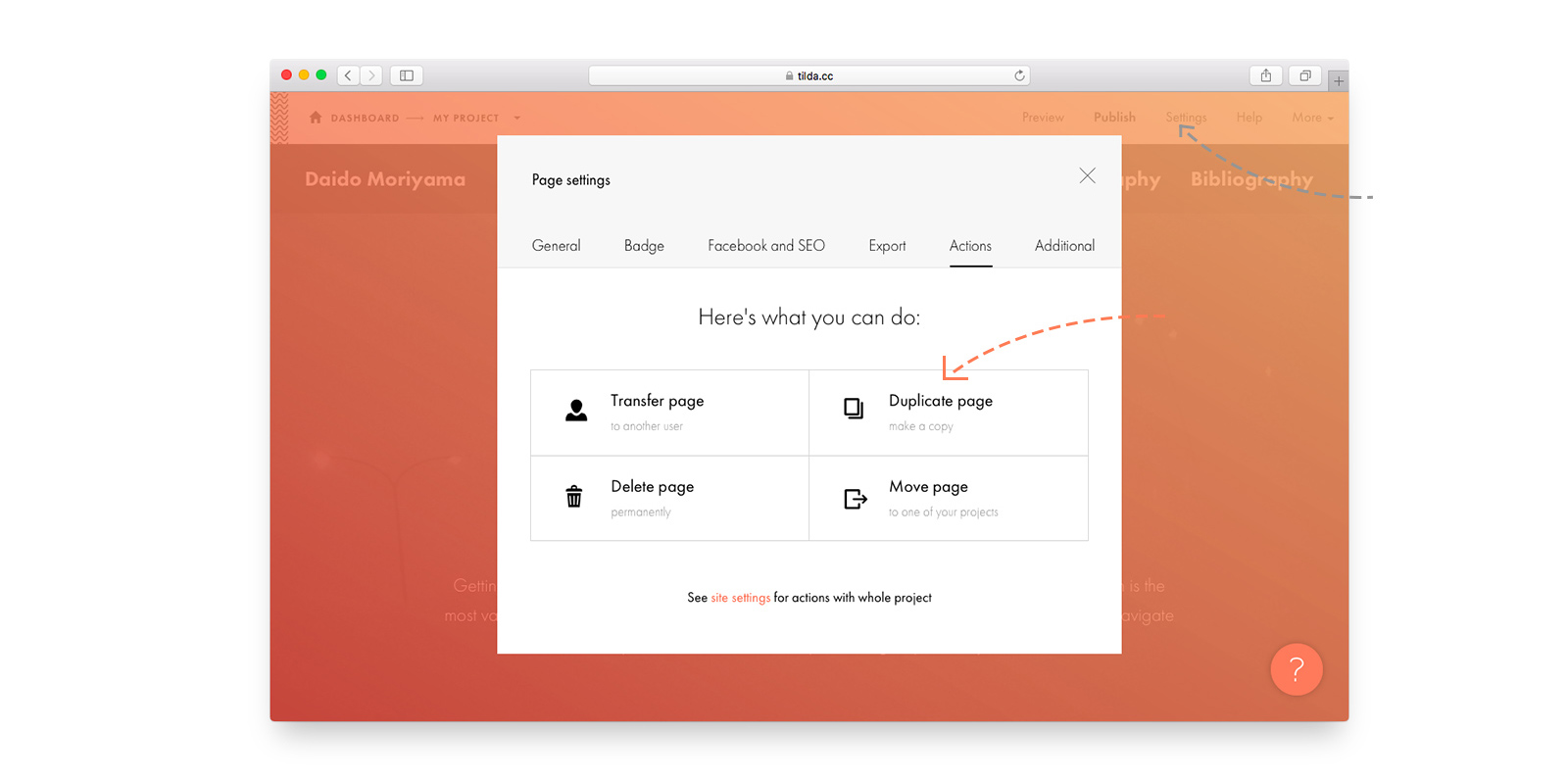 Чтобы поменять порядок страниц, нужно в списке страниц перетянуть страницу в то место, где она должна быть.