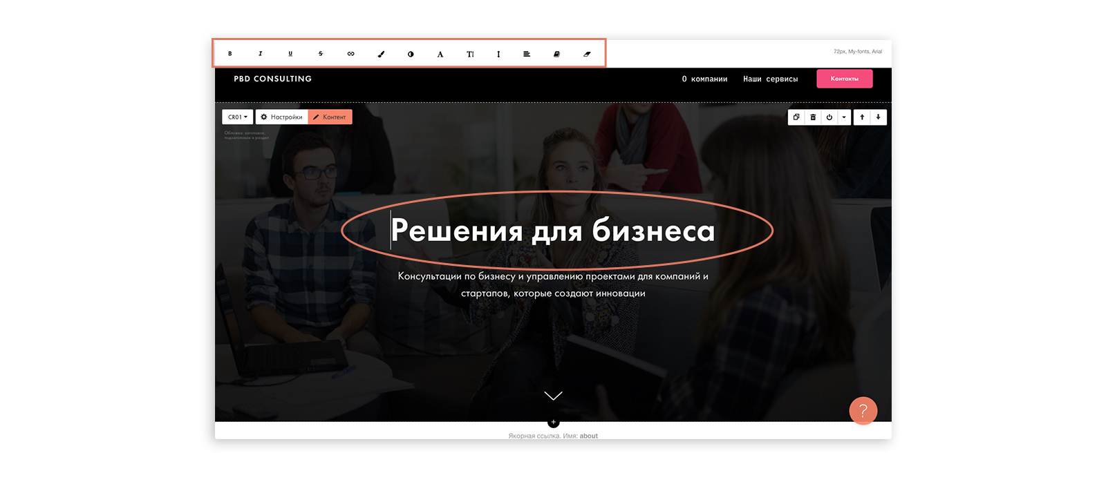Также можно быстро редактировать текст щелкнув мышкой прямо по текстовому полю. При этом инструменты редактирования шрифта появляются сверху. Чтобы сохранить изменения, просто щелкните по свободной области блока.